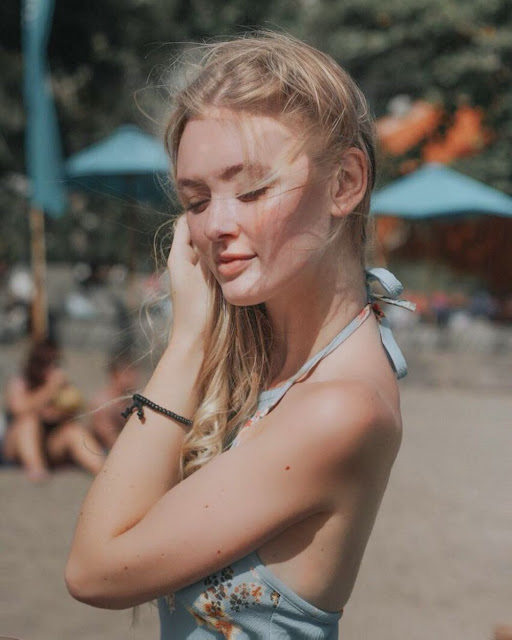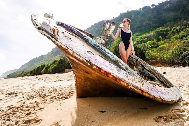 3. Salah satu pose Polly saat di Uluwatu, Bali